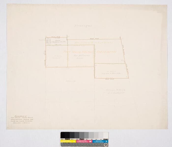 Other Abila [Avila] family landholders shown, as well as Molle, Dore, Cox. Ballona Road indicated. Color highlights; hachures; var. 14° 45' E Alternate title supplied by cataloger.