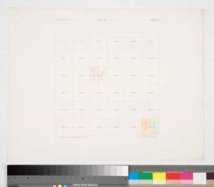 On printed township grid; notations and calculations in pencil. Title supplied by cataloger.