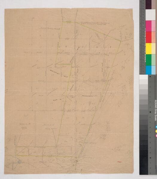 In pencil showing distances, posts, parcel numbers, calculations. Title supplied by cataloger.