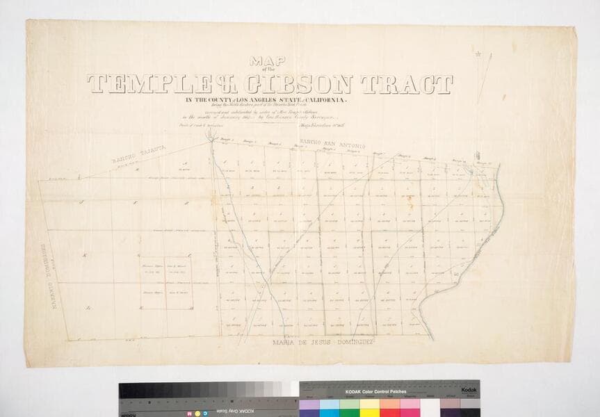 Map of the Temple & Gibson Tract ; being the north eastern part of the Rancho San Pedro, surveyed and subdivided by order of Mess. Temple & Gibson