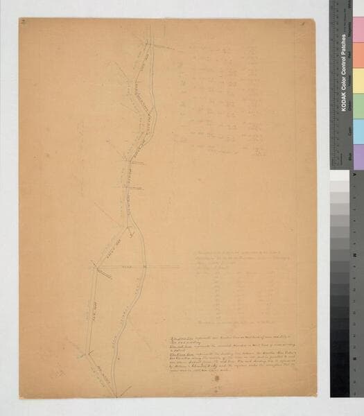 Rancho San Pedro. Three colored lines along San Gabriel River and key to their meanings. Pencil annotations. Title supplied by cataloger.