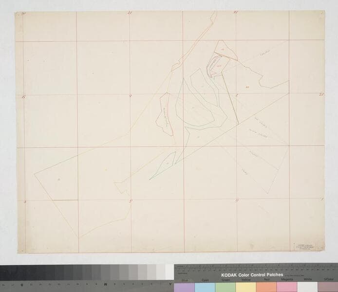 Rancho San Pedro. Three colored lines along San Gabriel River and key to their meanings. Pencil annotations. Title supplied by cataloger.