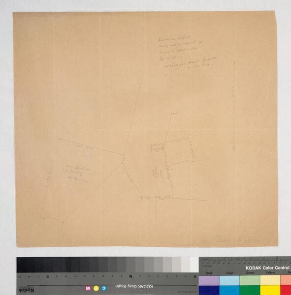 Color highlights, bearings, acreage. Abila parcel; survey notes. Surveyed on October 9, 1860, on request of Barker. Title supplied by cataloger.