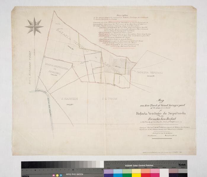 Map of a 100 Acre Tract conveyed by Rafaela Verdugo de Sepulveda to Maria Sepulveda de Sanchez
