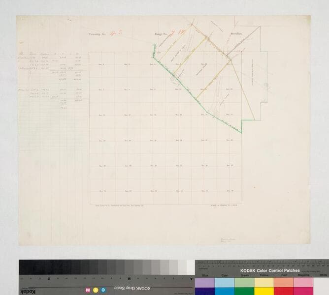 On printed township grid (36 sections); boundaries in color. Survey notes: boundaries, acreage. T.3S. R.7W. S.B.M.. Title supplied by cataloger.