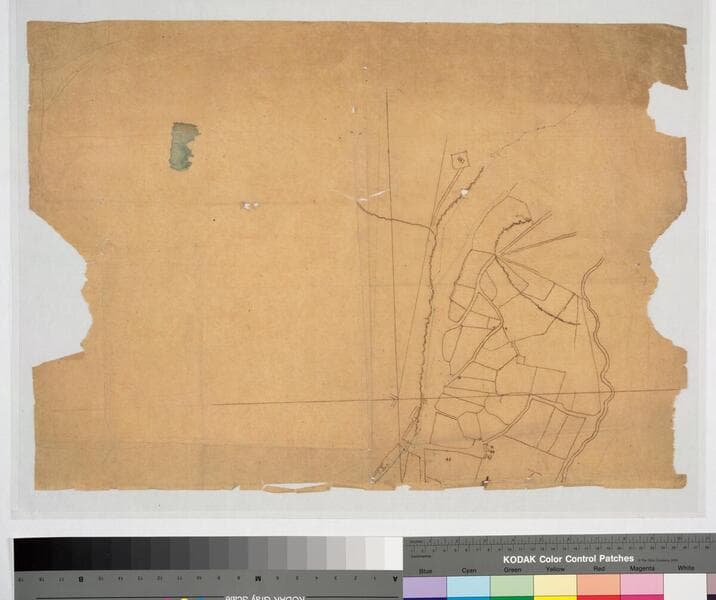 Parcel owners indicated; possible structures. 17 1/4 x 22 3/4 outline on tracing paper of preceding map. Title supplied by cataloger.