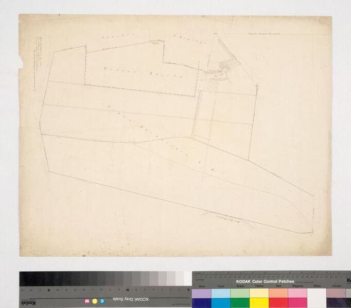 With structures, minor surface detail, color highlighting; bearings, distances; survey notes. Title supplied by cataloger.