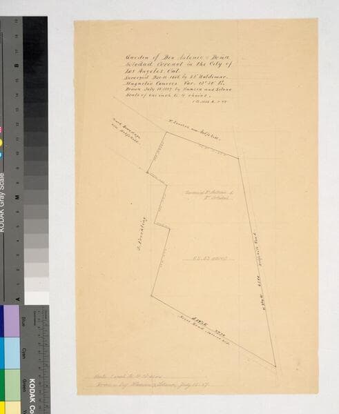 Garden of Don Antonio and Doña Soledad Coronel [along Reyes and Wolfskill roads, drawn in 1887 from a survey by Adolphus F. Waldemar]
