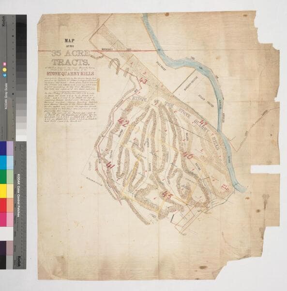 Map of the 35 Acre Tracts of the Los Angeles City Lands, Hancock's Survey, situate on the Southern Slope of the Stone Quarry Hills