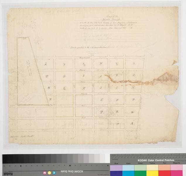 Map of the Mott Tract... Lands granted to the L.A. Canal & Reservoir Co. [Temple to Sixth St., Fort to Grasshopper St.]