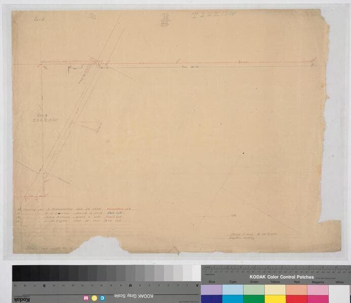Map is numbered 818; survey notes, bearings and distances; bridge; pencil annotations. Alt title supplied by cataloger.