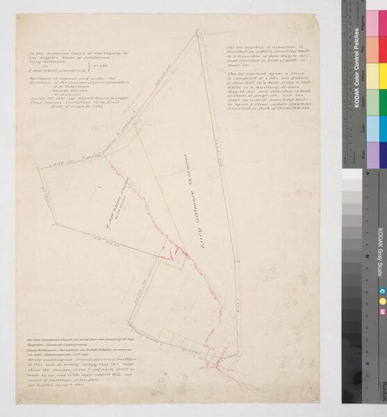 Sketches of parcels with courses, distances, acreage; West bank of Los Angeles River, north from Old Aliso Road (Macy St.) [see also Map folder 520]. Title supplied by cataloger.