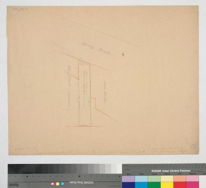 Map of a lot of Land on the South East side of Spring Street ; conveyed by Samuel Hellman to Gracian Espelet July 8th 1881