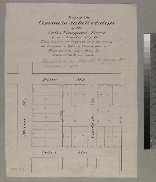 Map of the Consuelo & Brodrick subdivisions of the Celis Vineyard Tract
