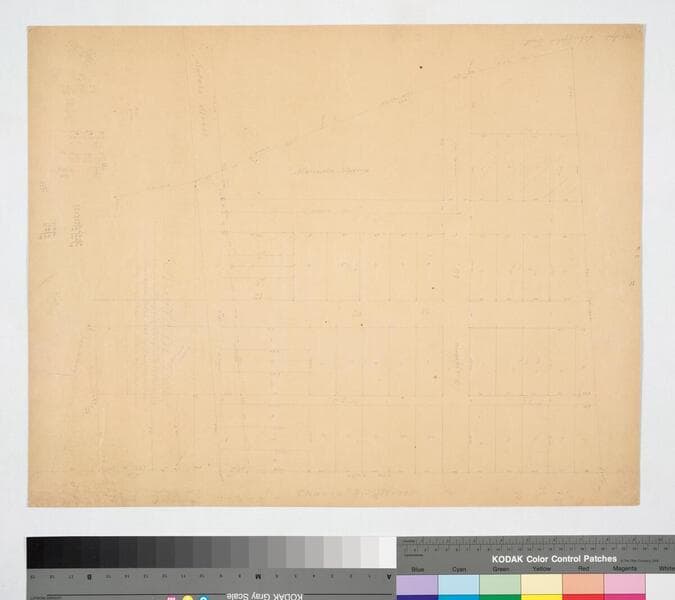 Ellis Tract Map No. 2; Adams St. to Ellis St., Toberman to past Thompson St; color highlighting, parcel owners, courses & distances indicated; pencil calculations . Sketch map draft on verso. Alt. title supplied by cataloger.