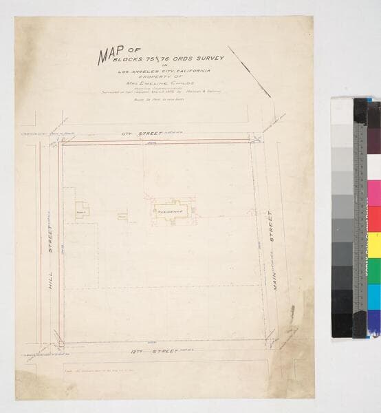 Blocks 75 & 76 Ords Survey... Property of O.W. Childs, showing improvements [Eleventh to Twelfth St. from Hill to Main St., showing structures]