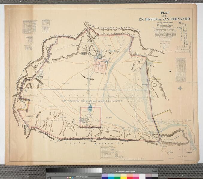 Plat of the Tracts of Land at the Mission of San Gabriel finally confirmed to J.S. Alemany, Bishop