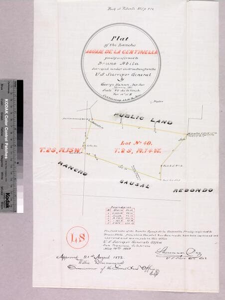 Plat of the Rancho Aguaje de la Centinela finally confirmed to Bruno Abila