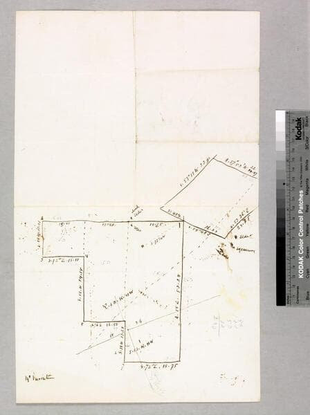 Title from verso. Alt. title Supplied by cataloger. Subdivision map showing some parcel owners, section & lots numbers ; pencil annotations & calculations, courses, distances. With inset of eastern boundary.