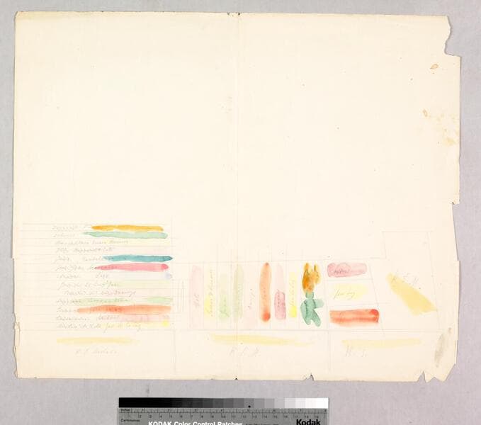Parcel owners, distances, courses; pencil calculations; sketched additions to subdivision Verso: incomplete pencil drawing. Title supplied by cataloger.