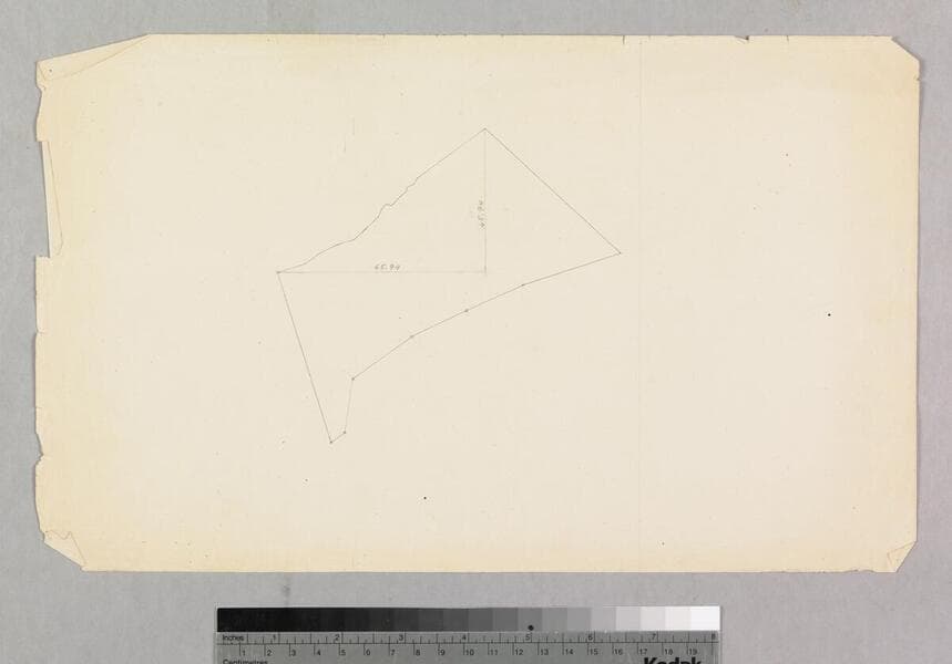Showing distances, acreage, parcel numbers; pencil calculations 5 3/8 x 12 3/8 in. separate sheet with table of acreage data. Title supplied by cataloger.