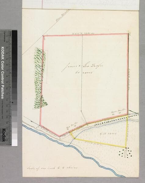 Bound within survey field notes document - Durfee brothers tracts - similar to previous maps in this folder, but more surface detail: vegetation, swamp lands along San Gabriel River. Alt. title supplied by cataloger.