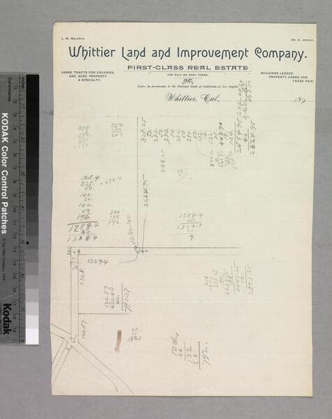 Showing courses, distances (some tabled), many calculations; also Dallas M. Cate, Guirado, White, Fuller parcels; fence of Dallas Cate. Title supplied by cataloger.