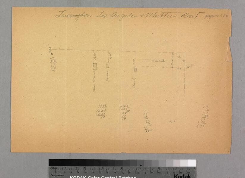 On Whittier Land & Improvement Co. stationery with distances; numerous calculations, . Title supplied by cataloger.