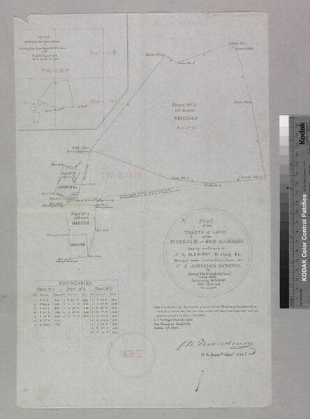 Plat of the Tracts of Land at the Mission of San Gabriel finally confirmed to J.S. Alemany, Bishop