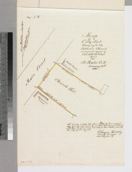 Map of a City Lot belonging to the Catholic Church surveyed at the request of Col. G.W.Gitchel