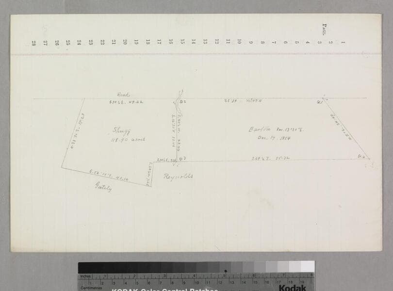 Shows bordering parcel owners, courses, distances (much less detail than previous map). Title supplied by cataloger.