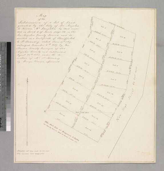 Map of the Subdivision of a Lot of Land granted by the City of Los Angeles to Hiram McLaughlin.; sale to P. Beaudry