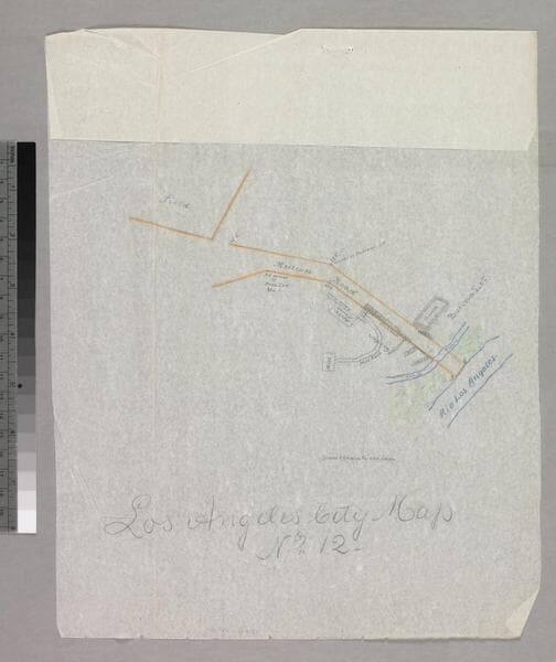 P. 9 of document, " Theodore Bors. tract of land on East side of Los Angeles River..." on verso of city engineer stationery, showing courses, distances. Title supplied by cataloger.