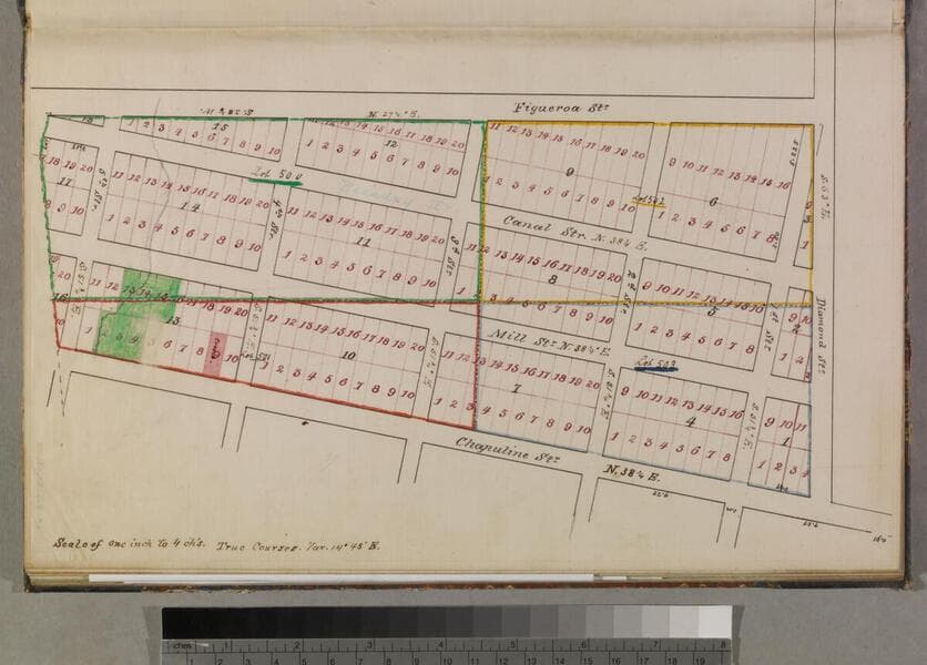 P. 75-80 of bound volume, "Subdivision of Lots 500, 501, 502 and 503 of Canal and Reservoir Lands," maps of varying sizes, details; surface details, courses, distances, parcel owners, hachures, markers, notes . Title supplied by cataloger.