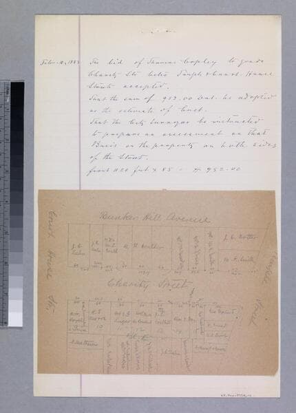 Verso of p. 5 of document, "Court House Street between Fort & Hill Streets..." showing distances, elevations. Title supplied by cataloger.