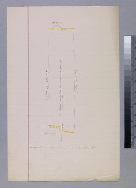 P. 2 of pinned document, "Survey No. 46 & 47, Manuel Coronel & Ramon Orduño..." showing parcels of Ramon Orduño and Andrea Almenanez along New High Street at Court St., showing courses & distances. Title supplied by cataloger.