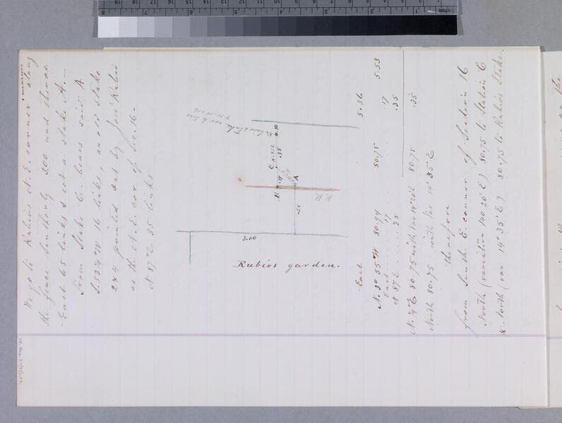Fifth page of document: Sections 9-10, 15-16 of T2S R13W - boundary, showing courses, distances, landmarks south of Scott's Vineyard. Title supplied by cataloger.