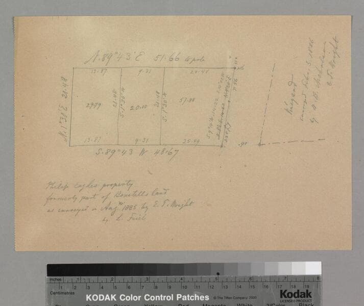 Pgs. 18-19 of stapled document, "The Celis Vineyard Tract..." showing courses, distances, structures, streets. Title supplied by cataloger.