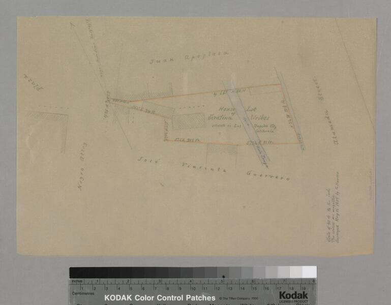 Serafina Uribe, José Vicente Guerrero: Lots on Negro Alley and Alameda Street [Survey No. 170, 171, showing structures]
