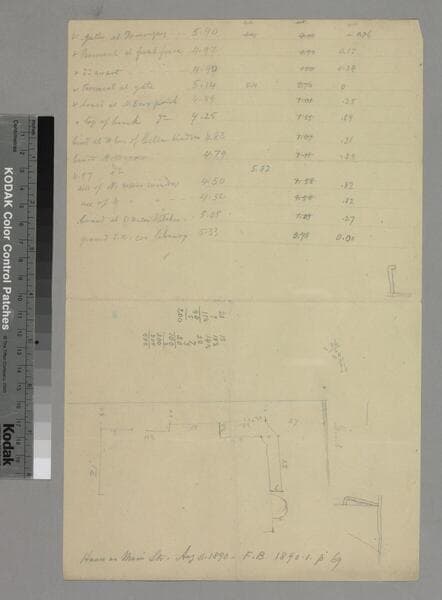 Sketch is on verso of notation: "First Street between Main & Fort,". Title supplied by cataloger.