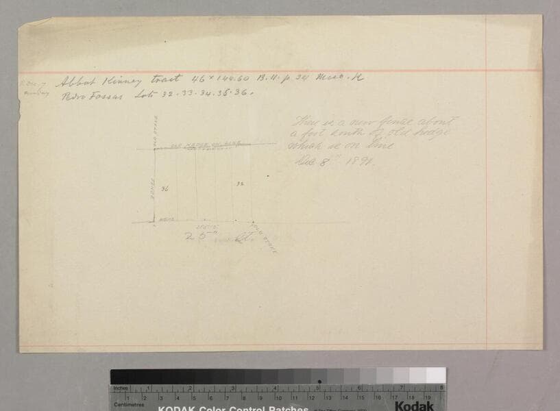 First sketch shows detailed subdivision along Main Street, intersected by Carlisle and Martin streets; smaller sketch showing only lot outline with distances, dated March 22, 1884; sheet dated 1868 has sketches of two lots, one bordered by Spring & Adam Streets "Thom [?] Delano to R.M. Vial. Title supplied by cataloger.