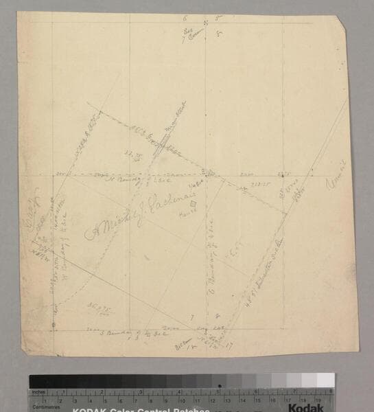 Showing courses & distances, stations, survey notes, structure, Moore's survey 29 January 1872. Title supplied by cataloger.