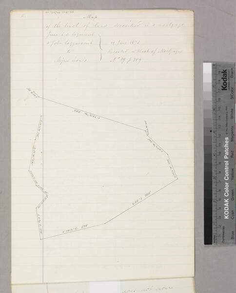 P. 6 [7] of fastened document, "Miguel Leonis. Tract of Juana Lopez de Warren de Lazzarovich..." showing courses, distances. Title supplied by cataloger.