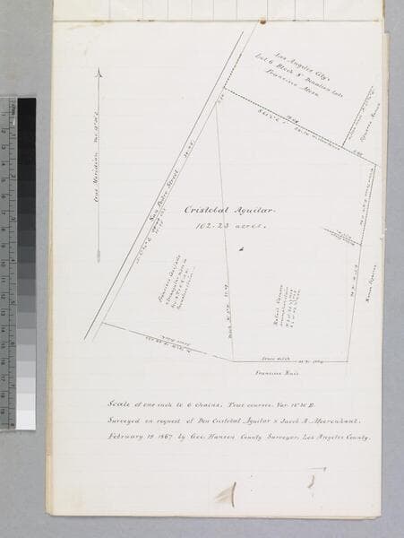 Showing parcels, owners, acreage east of Road to San Pedro, with courses, distances. Title supplied by cataloger.