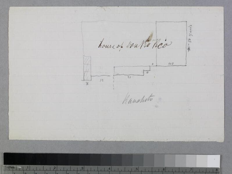 Verso of document "Pio Pico to Hattie W. Strong..." showing courses, distances. Title supplied by cataloger.