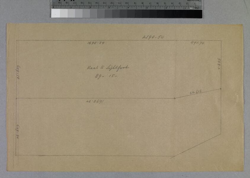 Verso of p. 1 of pinned document, "David Raab shows a map made by Mr. W. Thompson..." showing courses, distances. Title supplied by cataloger.