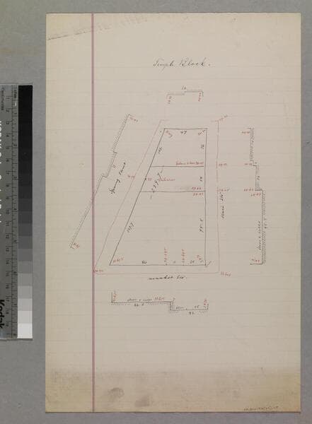 Figueroa at Adele St.; red & black ink, courses, distances. Alt title supplied by cataloger.