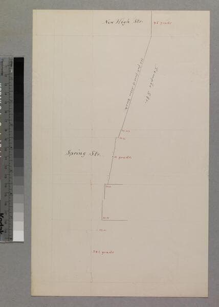 Showing Temple south of New High & Spring streets with grades; second sheet shows Temple north of New High to Main Street, Temple & Allen Blocks, with grades (in red on both sheets). Title supplied by cataloger.