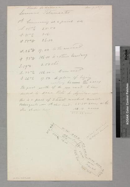 Verso of Sheet #1 - covered with calculations; shows courses, distances, acreage. Title supplied by cataloger.