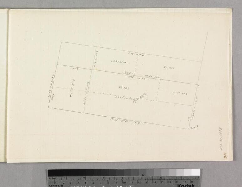 On back of document re: Plantiffs Messerve, Bent, Loop & Sorby, based on Hadley, 12/1874; showing courses & distances. Title supplied by cataloger.